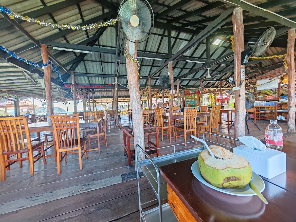 Overpriced (but in range of Koh Chang price standard),but delicious Thai seafood restaurant. The food itself are delicious as they're packed with multiple flavors in each food, and their ingredients are pretty fresh because the food source (seafood) is right next to the restaurant in fish cages that you can simply walk to while waiting for your food I'd recommend squid, shrimps, sea bass, and spotted grouper (if you're rich) menu. They did a good job at turning these seafood into pretty delicious meals, but the price is kinda expensive as it's located on Koh Chang (Chang island), which are generally expensive by itself plus this place is also a resort which also generally charge more for food. The atmosphere is the best part of this restaurant, as it is located right next to the sea, and contains multiple fish cages you can simply visit, and observed groupers fish from above. Overall, I would recommend those with a decent amount of money looking for a decent meal on this island.