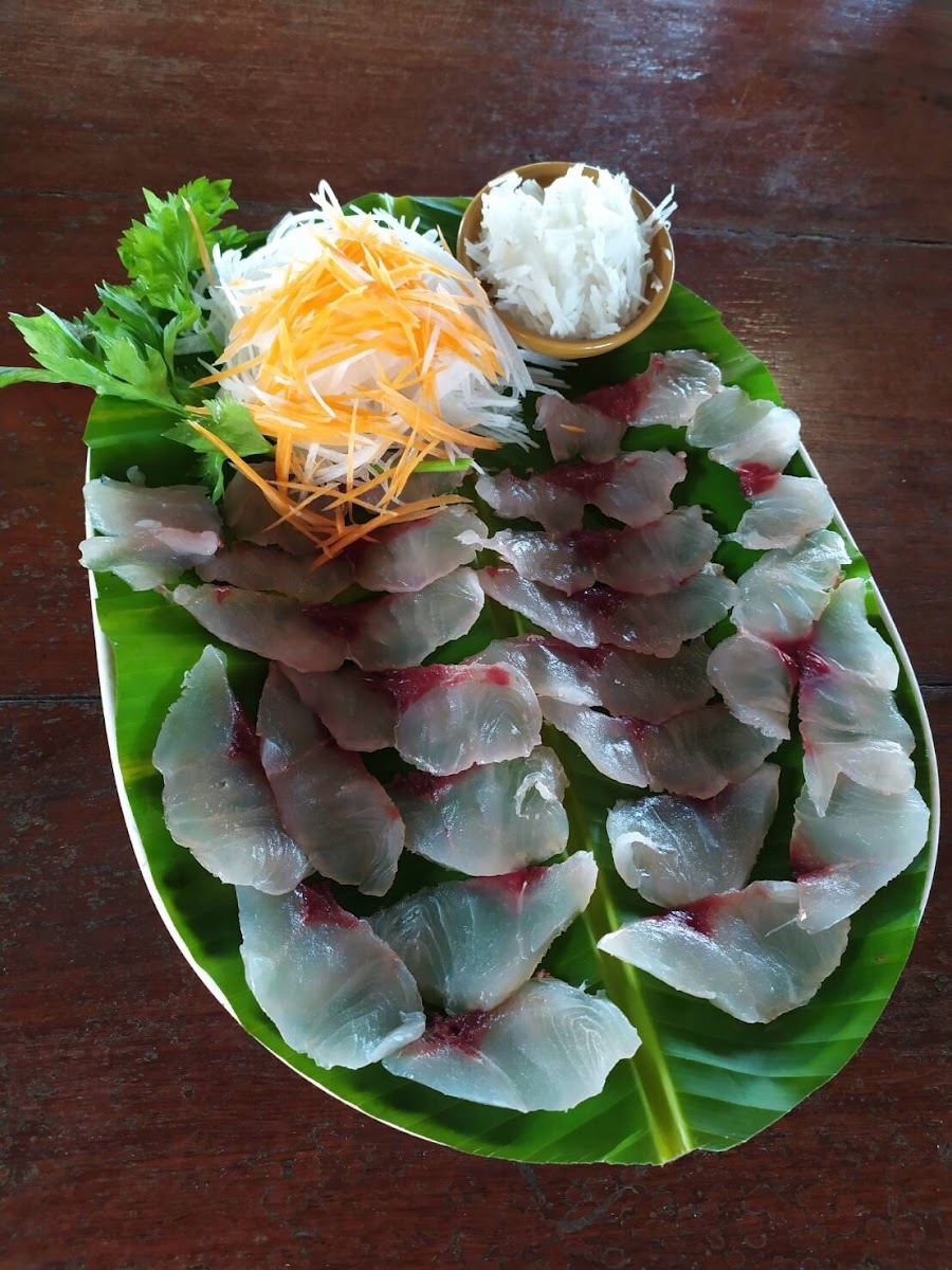 The seating is right over the water with great view to the islands. The food selection is huge, full of fresh fish and different seafood. Be careful the food is really very very spicy