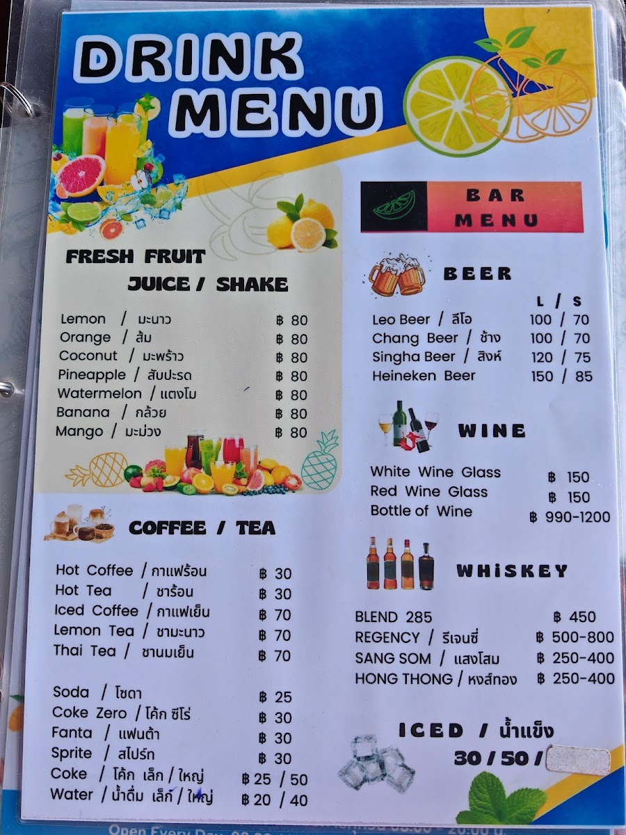 The menu at Salak Phet Seafood & Resort offers a relaxed and inviting selection centered around fresh, locally sourced seafood prepared with authentic Thai flavors. It’s a thoughtful blend of casual and comforting dishes that pair well with the peaceful seaside setting.